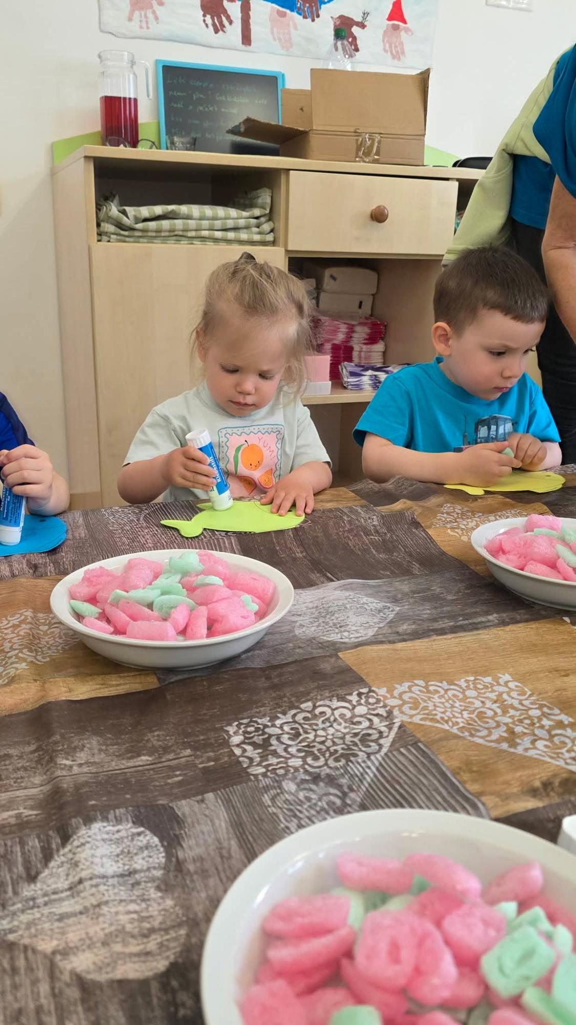 A Víz világnapja alkalmából a gyermekekkel közösen beszélgettünk a víz fontosságáról, szerepéről mindennapi életünkben. A kicsik „halacskákat” készítettek színes papírból, ragasztással és díszítéssel. Az aprólékos alkotás nemcsak örömteli tevékenység volt, hanem kiválóan fejlesztette a finommotorikus mozgásukat és a kéz–szem koordinációt is.